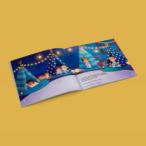 Com belíssimas ilustrações, ‘Acampadentro’ retrata uma das aventuras mais sonhadas na infância: dormir fora de casa. Seja na casa de amigos, primos, ou até mesmo na escola, a primeira vez que as crianças passam a noite longe de casa é uma conquista e tanto. Para JJ, a expectativa era grande desde o momento em que recebeu o convite para a festa de aniversário de seu amigo Heitor, que logo completaria 6 anos. Finalmente, o tão esperado dia chegou e o ‘Acampadentro’ na casa do amigo foi uma experiência memorável! Em meio a tanto entusiasmo, o que poderia dar errado? A princípio, nada. Mas quando as luzes se apagaram, enfrentar o medo se tornou o maior dos desafios.